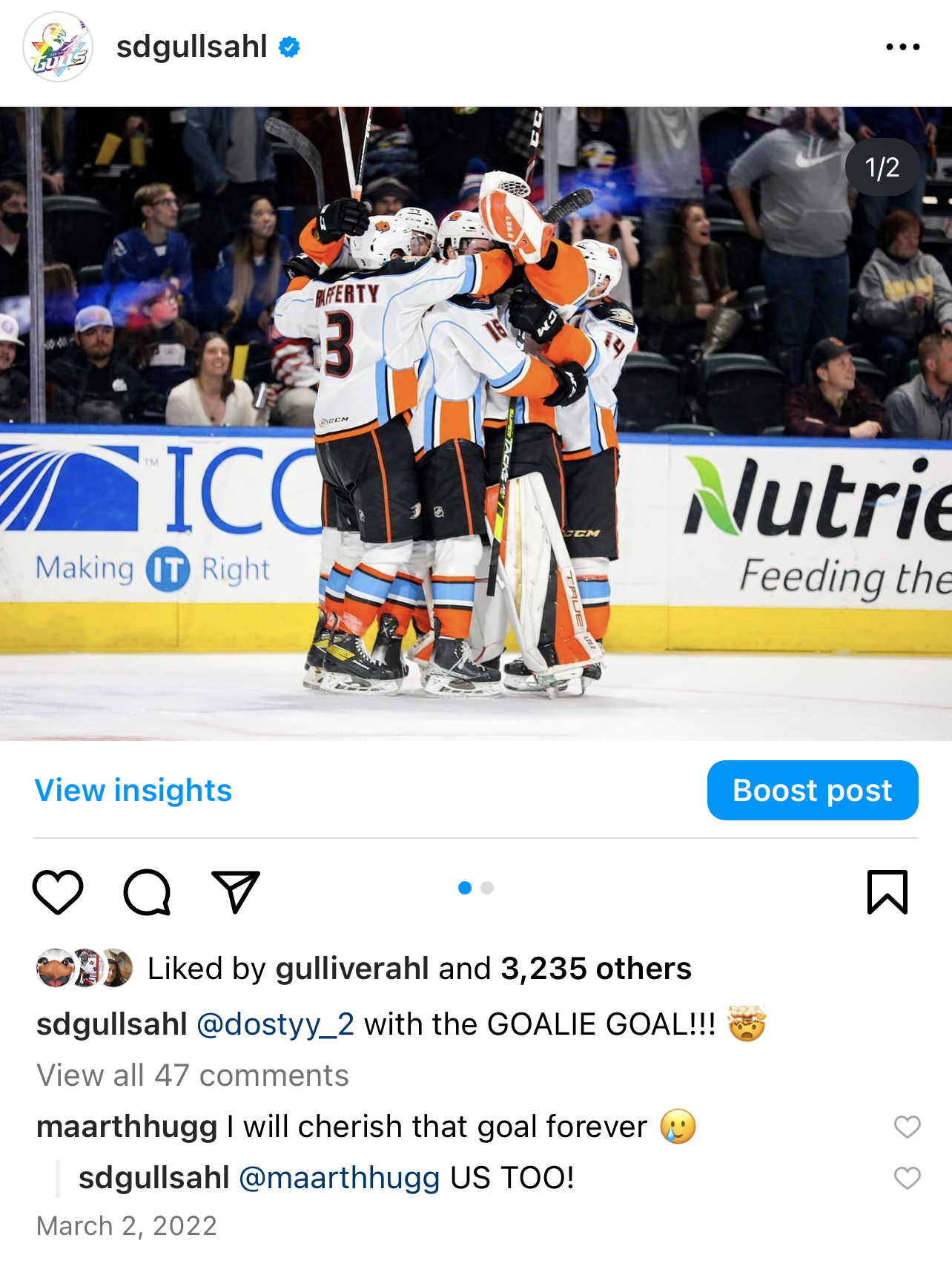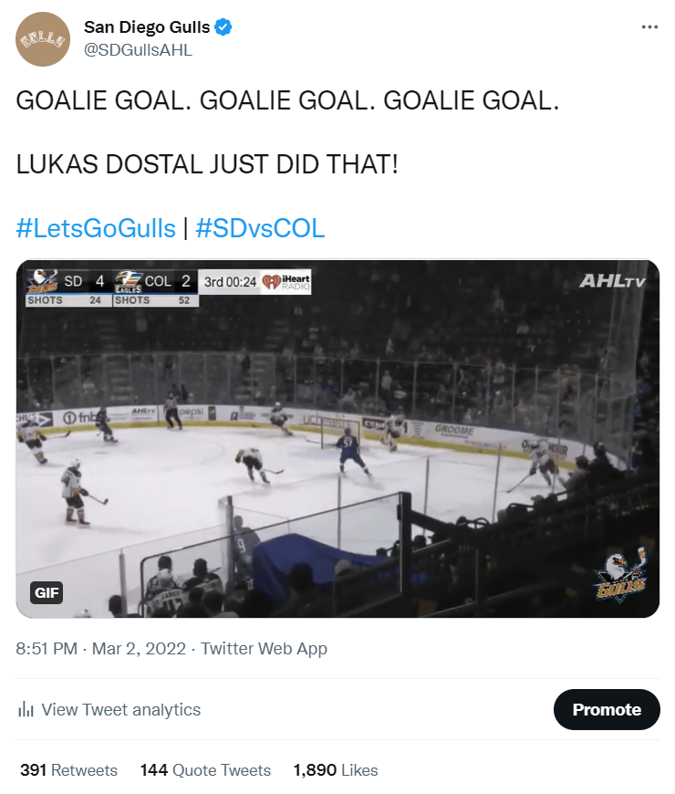On March 2, 2022, our goaltender had an all-time great performance, recording 51 saves and scoring a goal. Both feats are incredibly rare in the support so I knew this was a moment we had to capitalize on.