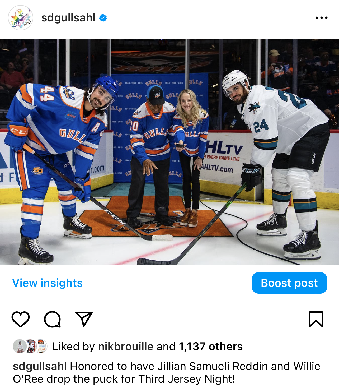 On the night itself, I made sure to highlight the jersey and the notable other game related elements that linked to it. For example, the jersey was inspired by the jersey that Willie O’Ree (the first Black player in the NHL) wore when he was a Gull and so his appearance at the game was a big deal.