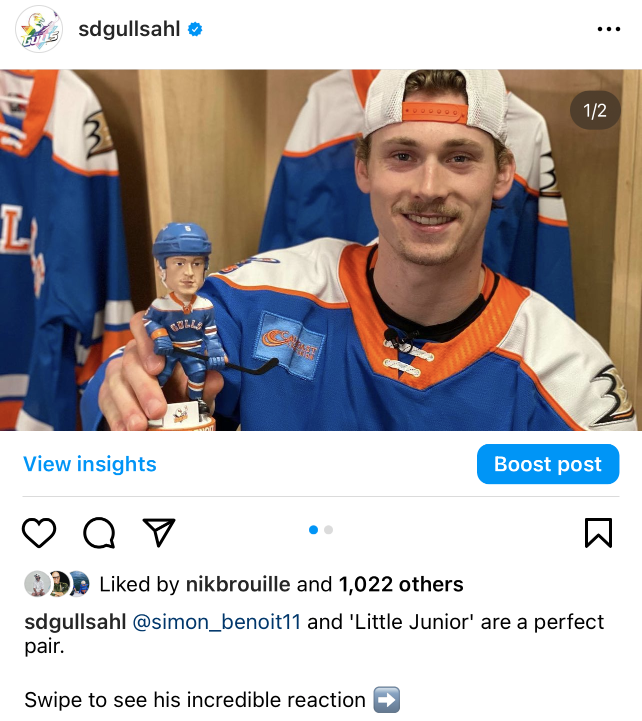 Following the reveal of the jersey, we continued to push the night and the jersey by putting out content featuring an exclusive bobblehead of a player in the jersey. As well as leaning into the elements of new gear on ice that would excite our fan base.