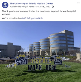 During the initial spike, the hospital staff felt the burden of the pandemic the hardest. The community really stepped up to show their support and social media served to highlight that. High engagement per reach (21%) demonstrated how valuable this content was to UTMC staff and the Toledo community.